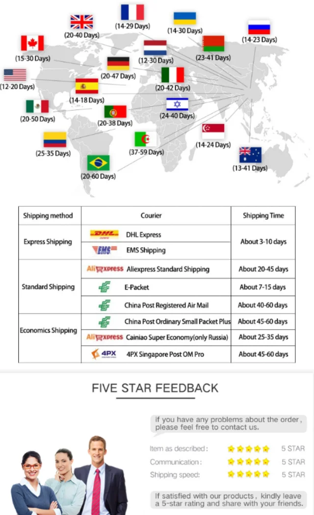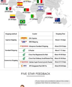 🌍 Global levering: De fleste pakker ankommer inden for 8 hverdage, men vi tilbyder levering over hele verden med en maksimal tid på 15 hverdage.