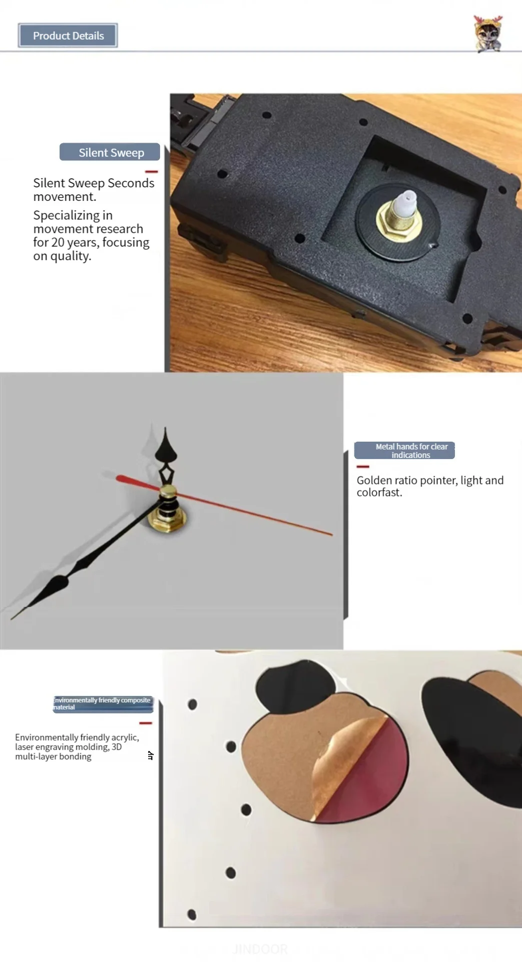 Den unikke Designer kattevægur kombinerer stil og funktionalitet til perfektion. Fremstillet af holdbare materialer sikrer den lang levetid og en finish af høj kvalitet. Udstyret med et præcist og lydløst kvartsurværk passer denne stille vægur perfekt til både stuer og soveværelser, uden at forstyrre roen. Med sin optimale størrelse og moderne design er den et ideelt valg til enhver væg – og en fantastisk gaveidé til enhver lejlighed.