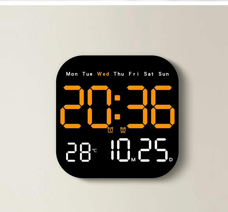 Denne digitale vægur med vækkeur imponerer med sin pålidelige teknologi og holdbare konstruktion, perfekt til det moderne hjem. Uret er fremstillet af kvalitetsmaterialer, der sikrer lang levetid, mens den præcise digitale mekanisme giver præcise tidspunkter uden afbrydelser. Med en ideel størrelse passer det nemt ind i både små og store rum. Takket være det tydelige display og de minimalistiske linjer forenes funktionalitet og æstetik i en elegant løsning, der løfter din indretning.