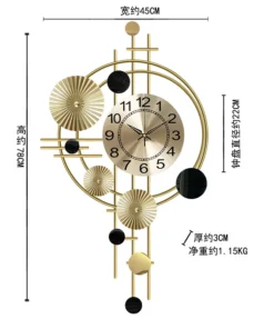 Geometrisk Cirkulær Vægur guld kombinerer æstetik og funktionalitet med imponerende finesse. Urets præcise kvartsbevægelse sikrer nøjagtighed og en lydløs oplevelse, ideel til rolige miljøer som kontorer eller soveværelser. Fremstillet af slidstærke materiale og med en luksuriøs guldfinish, tilføjer det et moderne præg til enhver væg. Den mellemstore størrelse passer perfekt til både små og store rum, hvilket gør det til et alsidigt valg til hjemmet eller en gennemført gave.