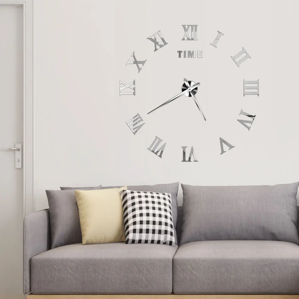 Meget stort 3D-mærkat vægur 80-120cm – Stilrent design, lydløst urværk og justerbar størrelse. Perfekt til moderne indretning eller som gaveidé!