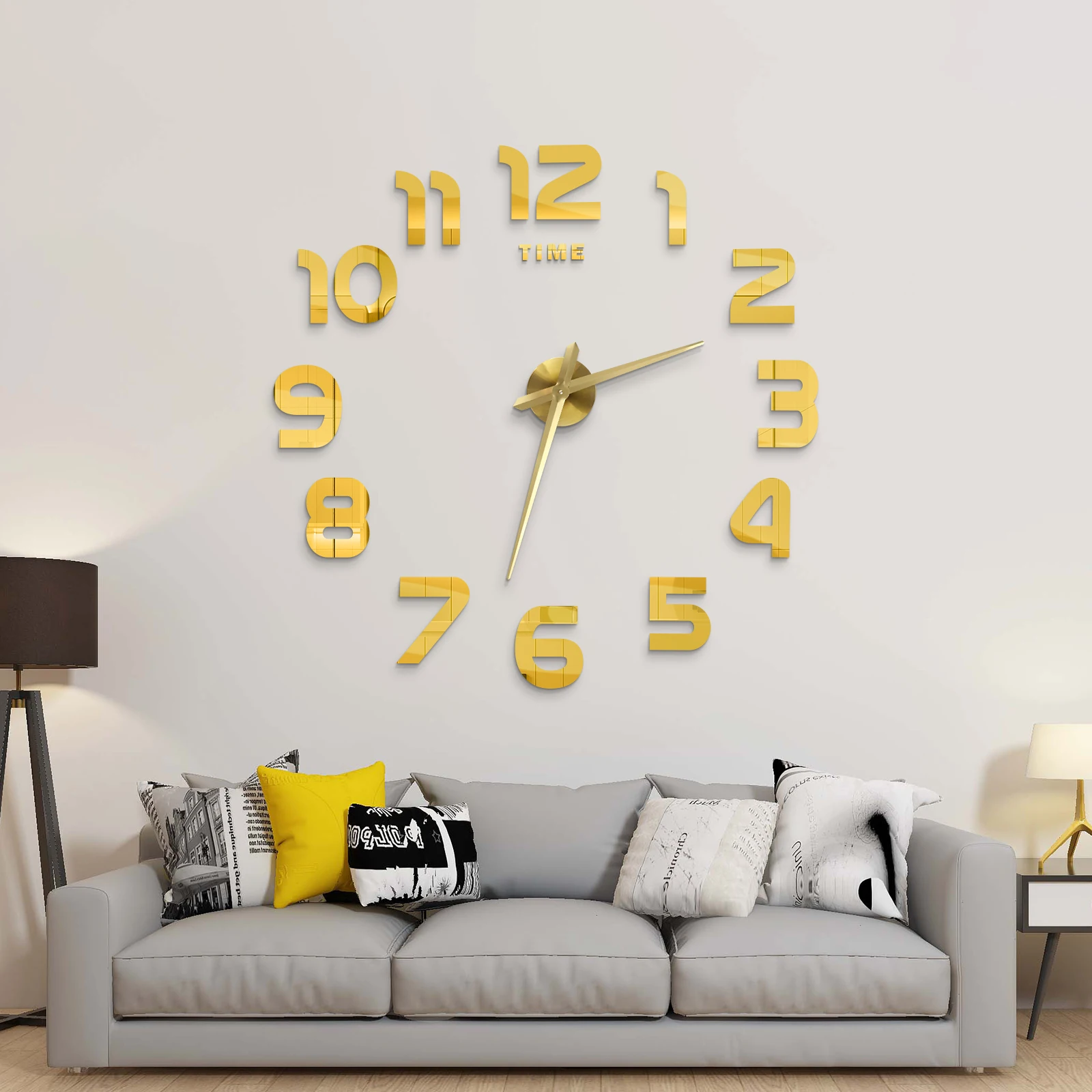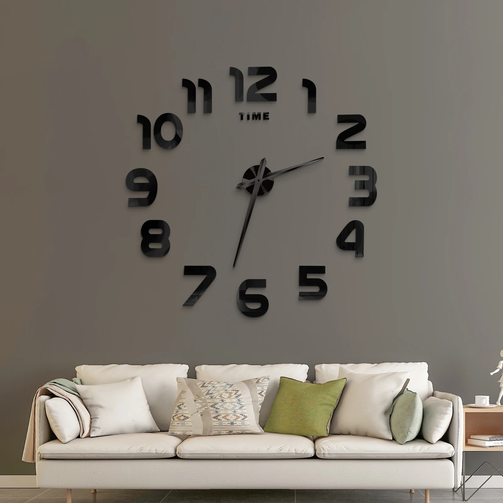 Meget stort 3D-mærkat vægur med stilrent design