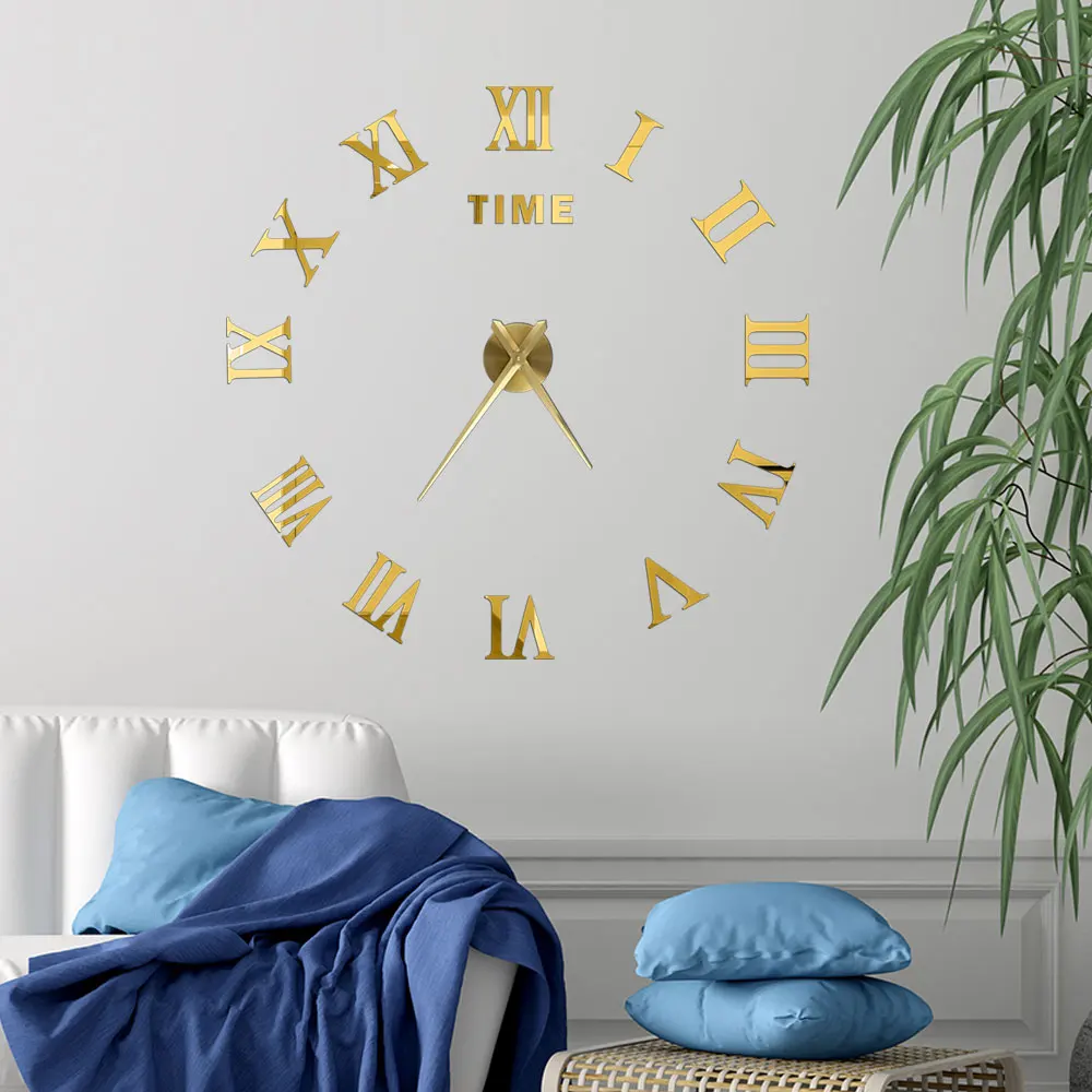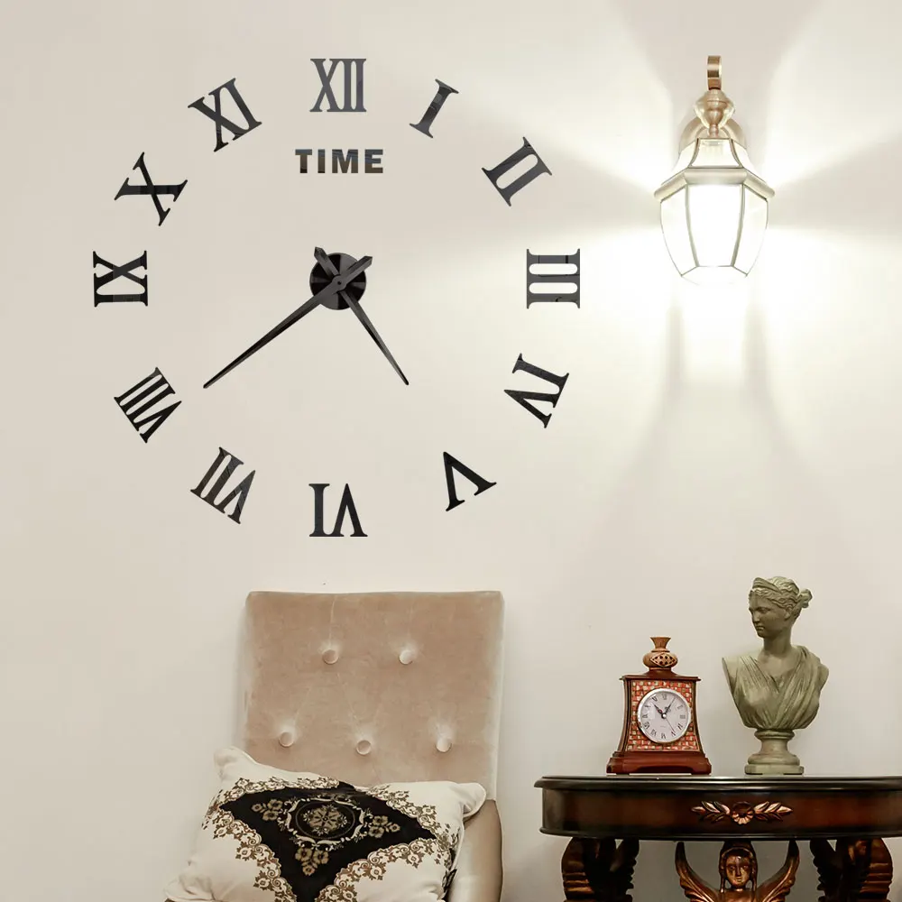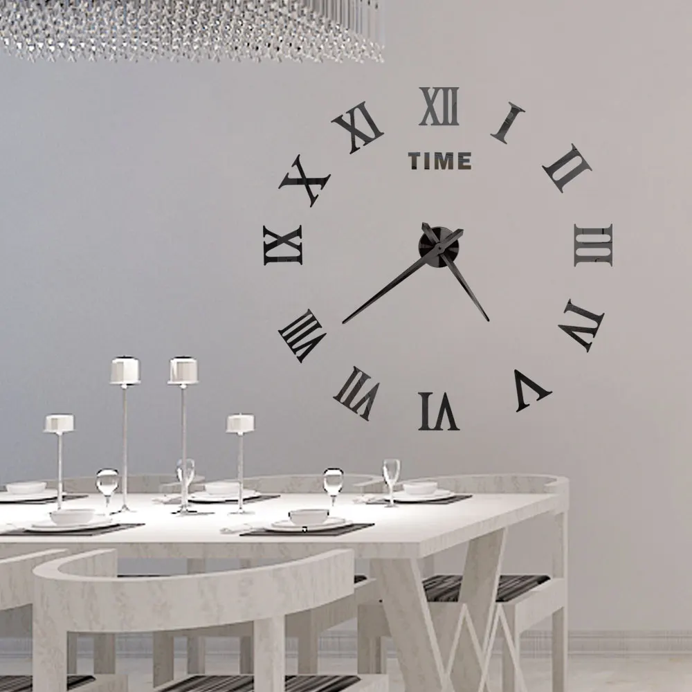 Opgrader dit hjem med meget stort 3D-mærkat vægur, i romertal 80-120cm – stilfuldt design, lydløs mekanisme og justerbar størrelse.