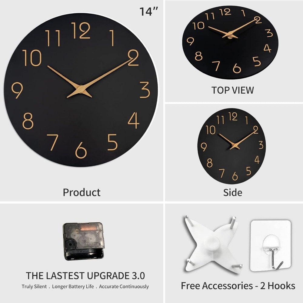 Minimalistisk Sort Vægur 12: Støjsvagt og Tidløst Design