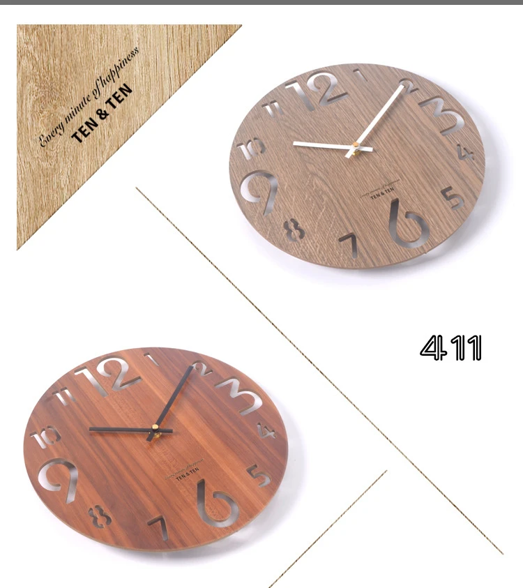 Modern 3D Træ Vægur - stilfuldt lydløst design i træ
