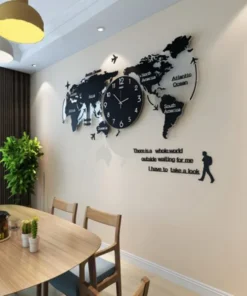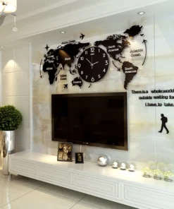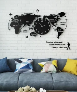 Sort Vægur med Verdenskort – Stilrent design, lydløst urværk og robust konstruktion. Perfekt til hjemmet eller som gave. Ideelt for globetrotteren!