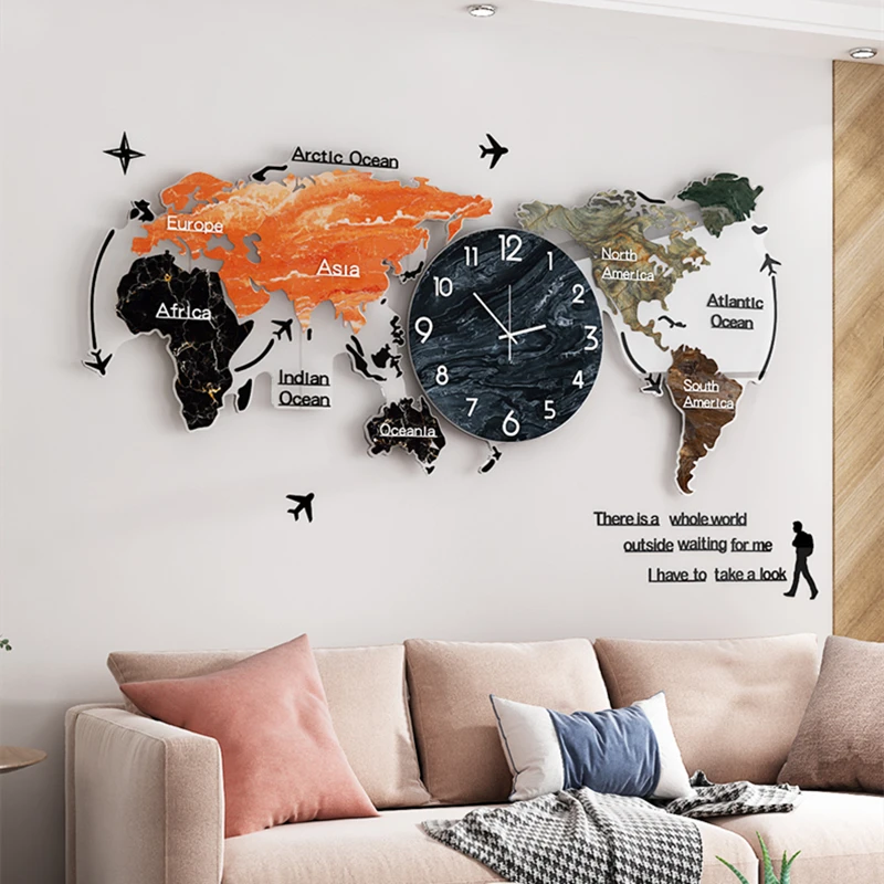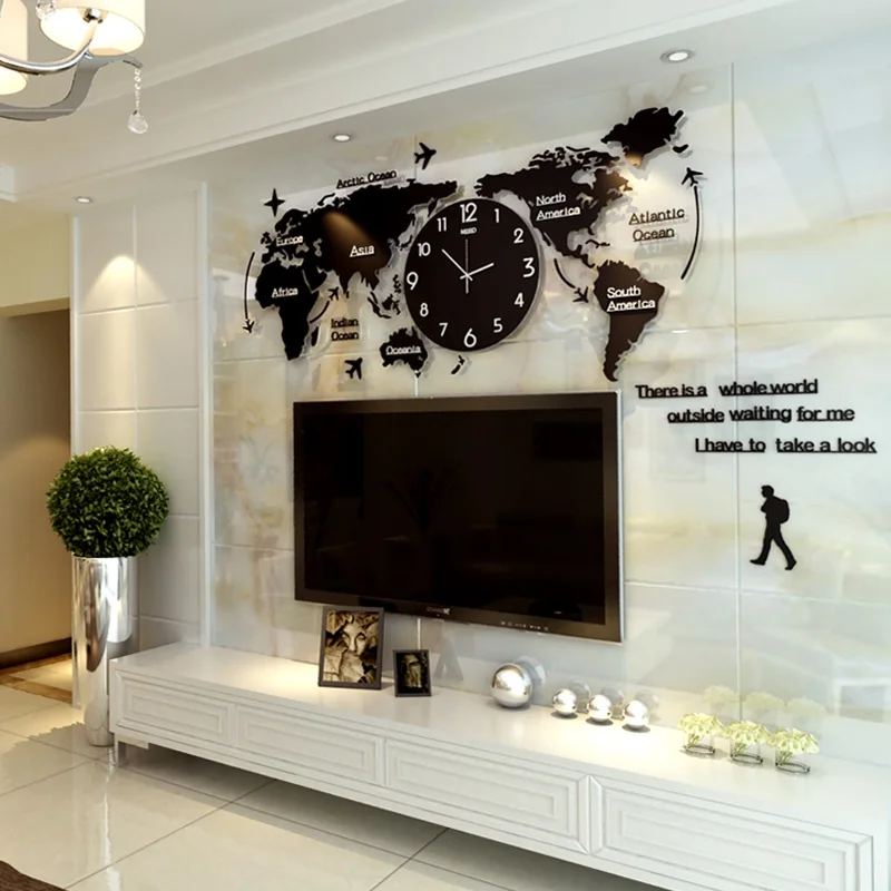 Stilrent Sort Vægur med Verdenskort i Holdbart Design
