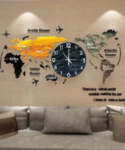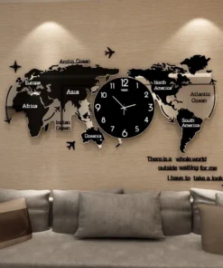 Dette sorte vægur med verdenskort kombinerer funktionalitet med moderne æstetik, der passer perfekt ind i ethvert hjem eller kontor. Med sit elegante design og minimalistiske udtryk tilføjer det en sofistikeret atmosfære til både stuer, køkkener og arbejdsområder. Let at installere og kræver minimal vedligeholdelse, hvilket gør det ideelt for en travl hverdag. En fremragende gaveidé til dem, der sætter pris på stilfulde og praktiske boligaccessories.