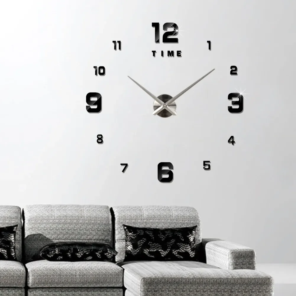 Stort 3D selvklæbende vægur i moderne design. Stilrent, lydløst og nemt at montere – perfekt som unik dekoration eller gaveidé.