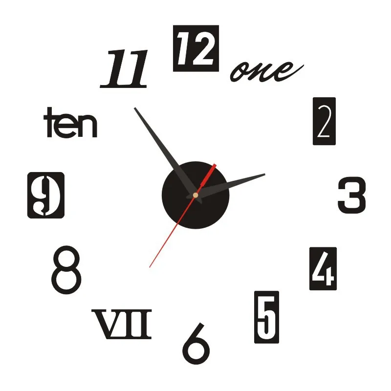 Stort klistermærke vægur « One, Two, Three » kombinerer moderne design, stilhed og funktionalitet. Perfekt til ethvert hjem eller som en unik gaveidé!